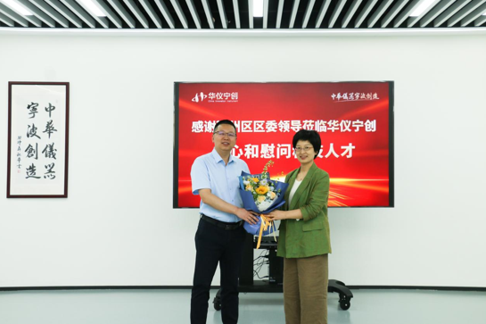 在“5·30”全國科技工作者日來臨之際,5月26日下午,鄞州區(qū)委副書記、社會工作部部長、政法委書記余寧率區(qū)委辦、區(qū)科技局、區(qū)科協(xié)等部門負責人一行,赴寧波華儀寧創(chuàng)智能科技有限公司(以下簡稱“華儀寧創(chuàng)”)開展走訪慰問活動。華儀寧創(chuàng)總經理聞路紅教授代表公司全體科技工作者接受了區(qū)委領導的關心和慰問。