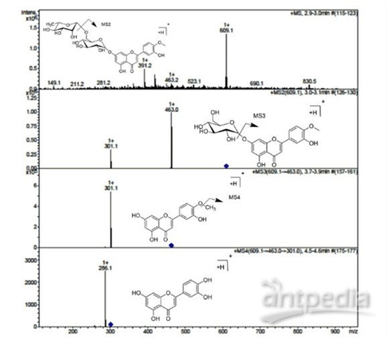 某藥物ESI-MSn質譜圖(正離子模式)及碎裂機理