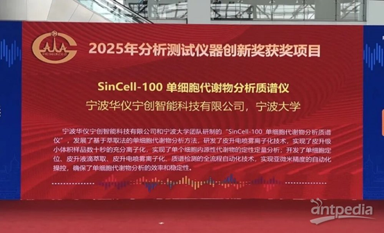 本次展會開幕式當天,SinCell-100單細胞代謝物分析質譜儀憑借技術創新與產業應用價值,再次斬獲“2025年度分析測試儀器創新獎”。聞路紅清晰梳理出三大核心支撐。其一,該儀器是經官方認定為先進裝備制造業 “國際首臺套” 產品,在技術原創性與應用突破性上具備優勢;其二,它源于從0到1的原創智慧,是團隊將自主研發的核心技術成功轉化為實體產品的成果,凝聚了多年科研心血;其三,儀器擁有重大經濟與社會效益,可廣泛應用于前沿生命科學探索、重大疾病臨床篩查診斷及個性化治療,同時適配行業新趨勢,為單細胞代謝組學提供先進、精準的技術支撐。
