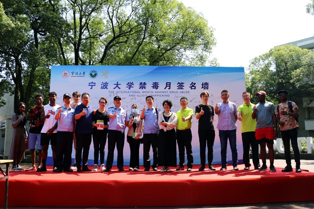 寧波大學禁毒月簽名墻合影