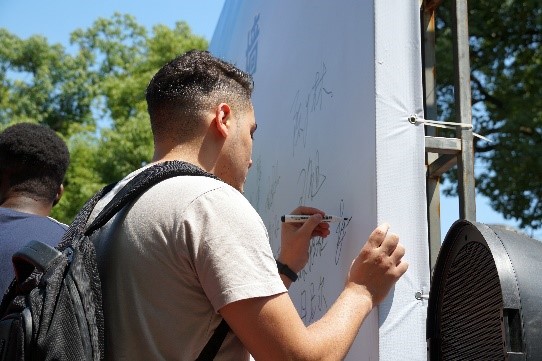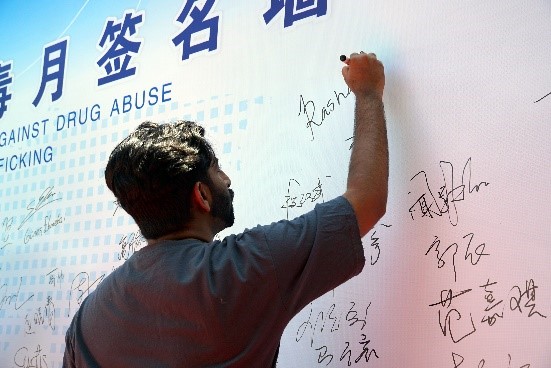 在各位領導嘉賓的帶領下,參加活動的老師和同學們紛紛在“禁毒月簽名墻上”留名,對自己堅決抵制毒品、建設無毒社會留下莊嚴承諾。